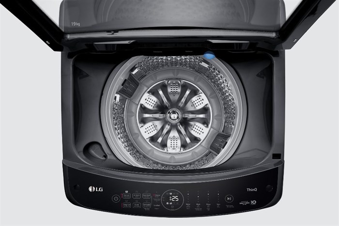 - Máy giặt LG AI DD Inverter 19 kg TV2519SV7J là dạng máy giặt lồng đứng - cửa trên thiết kế tinh tế, với màu đen chủ đạo thích hợp với những gian bếp cá tính.