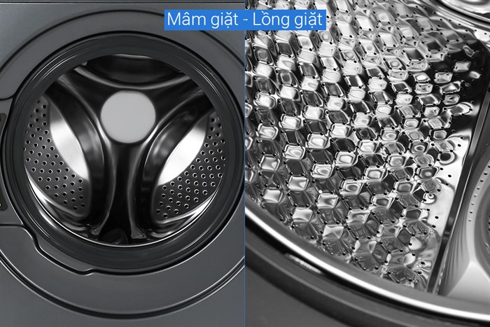 - Lồng giặt từ thép không gỉ có độ bóng cao, hạn chế mảng bám và cặn bột giặt, nâng cao hiệu quả giặt giũ.