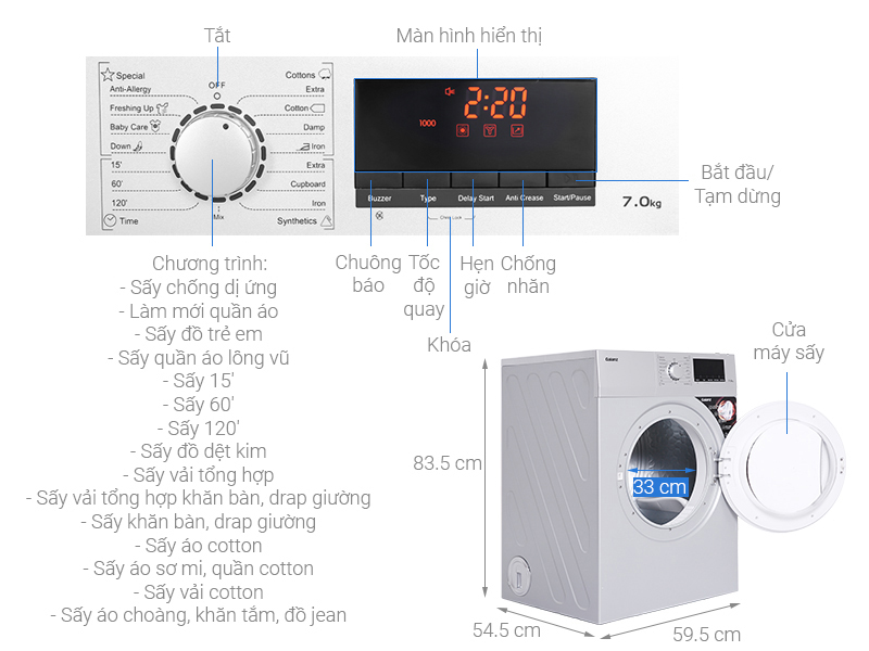 - Khối lượng sấy: 7.0KG