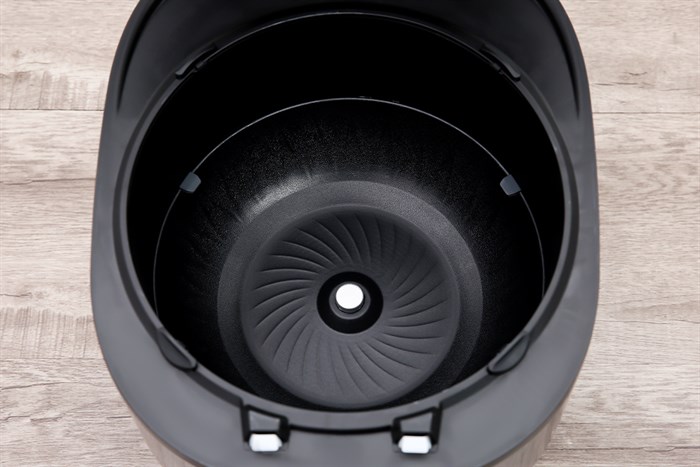 Thiết kế nồi cơm điện hiện đại, màu xám đậm trung tính, kết cấu chắc chắn, dễ bố trí trong mọi không gian bếp.