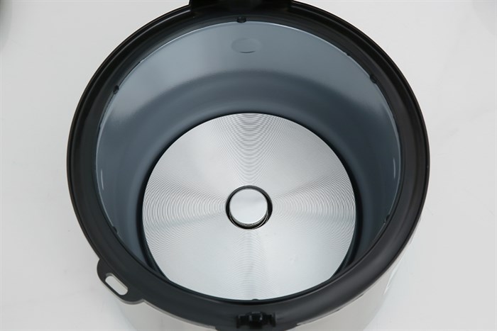 - Lòng nồi làm từ chất liệu hợp kim nhôm dày khoảng 2 mm phủ lớp chống dính, gia nhiệt tốt giúp cơm chín đều, giữ ấm lâu, chống dính cháy và dễ vệ sinh.