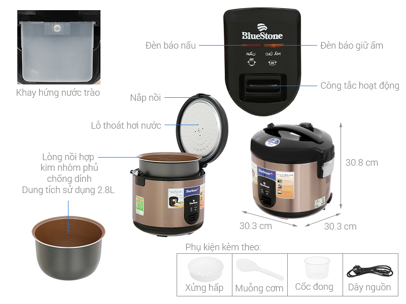 Nồi cơm nắp gài BlueStone 2.8 lít RCB-5538 có kiểu dáng hiện đại, dung tích 2.8 lít phù hợp gia đình 6 - 8 thành viên, lòng nồi phủ chống dính nấu cơm an toàn, dễ làm sạch, dễ sử dụng, là thiết bị hữu ích giúp phục vụ những bữa cơm nóng hổi cho cả gia đình.