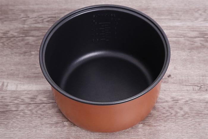 Lòng nồi bằng hợp kim nhôm phủ lớp chống dính Whitford bền tốt, nấu cơm an toàn cho sức khỏe, vệ sinh dễ dàng.