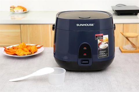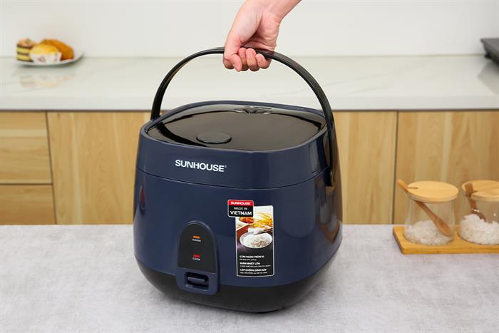 - Thân nồi cơm điện Sunhouse bằng nhựa PP cách nhiệt, có màu xanh dương đậm sang trọng, thanh lịch, phù hợp với nhiều không gian bếp khác nhau.