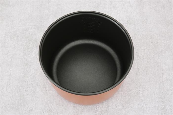 - Lòng nồi có chất liệu hợp kim nhôm bền tốt với độ dày 1.106 mm, được phủ lớp chống dính kép đảm bảo an toàn cho sức khỏe, chống dính cháy và dễ chùi rửa.