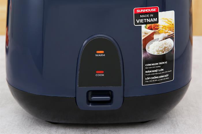 - Nồi cơm nắp gài Sunhouse có 2 chế độ nấu cơm và giữ ấm cơ bản, điều khiển dễ dàng với nút gạt. Bảng điều khiển được trang bị đèn báo cho bạn tiện theo dõi quá trình nấu.