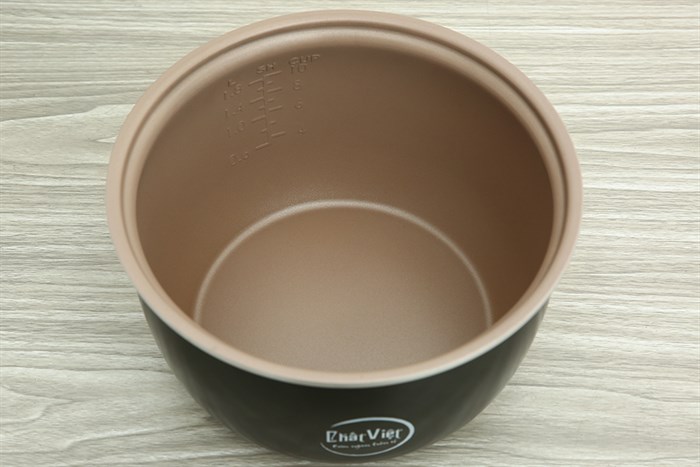 - Lòng nồi bằng hợp kim nhôm phủ chống dính chất lượng, dày bền, gia nhiệt tốt và nấu cơm ngon, tiện vệ sinh.