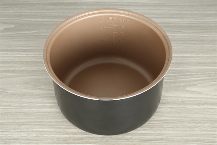 - Lòng nồi dày 1.7 mm bằng hợp kim nhôm phủ chống dính (PTFE 2 lớp) giúp hạn chế dính cháy cơm, mặt ngoài của lòng nồi phủ sơn chịu nhiệt, tiện vệ sinh.