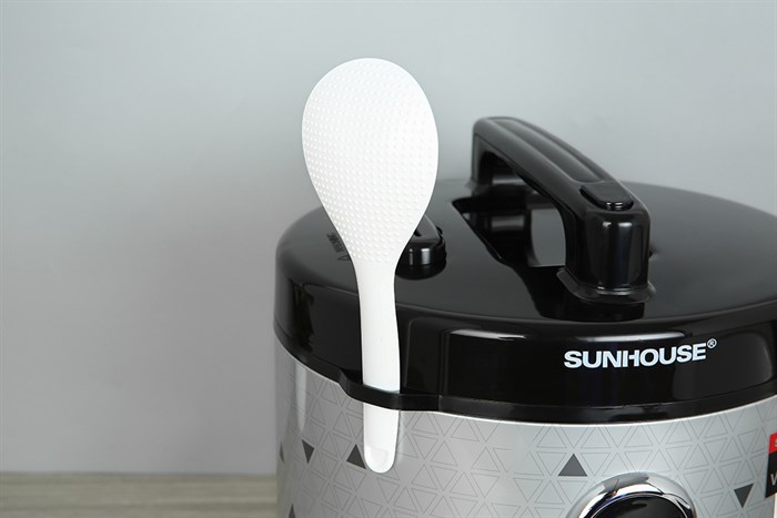 - Nồi cơm điện Sunhouse màu sắc trung tính, thích hợp với nhiều không gian bếp, có quai xách để bạn dễ di chuyển nồi.