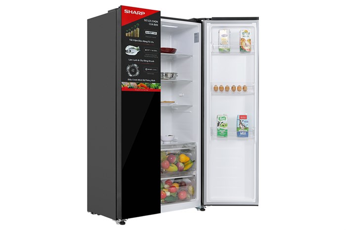 - Tủ lạnh Sharp đáp ứng tốt cho nhu cầu bảo quản thực phẩm của các hộ gia đình từ 4 - 5 người nhờ thiết kế dung tích sử dụng 442 lít.